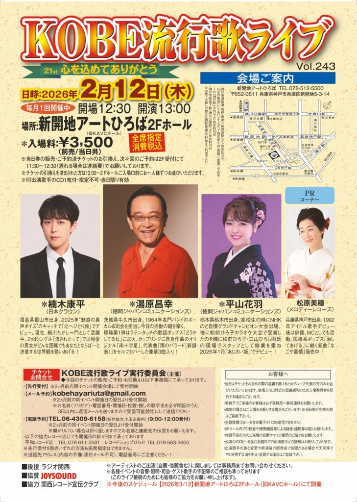 <お問合せ> KOBE流行歌実行委員会(06-4309-6158) (受付時間 9時-12時)